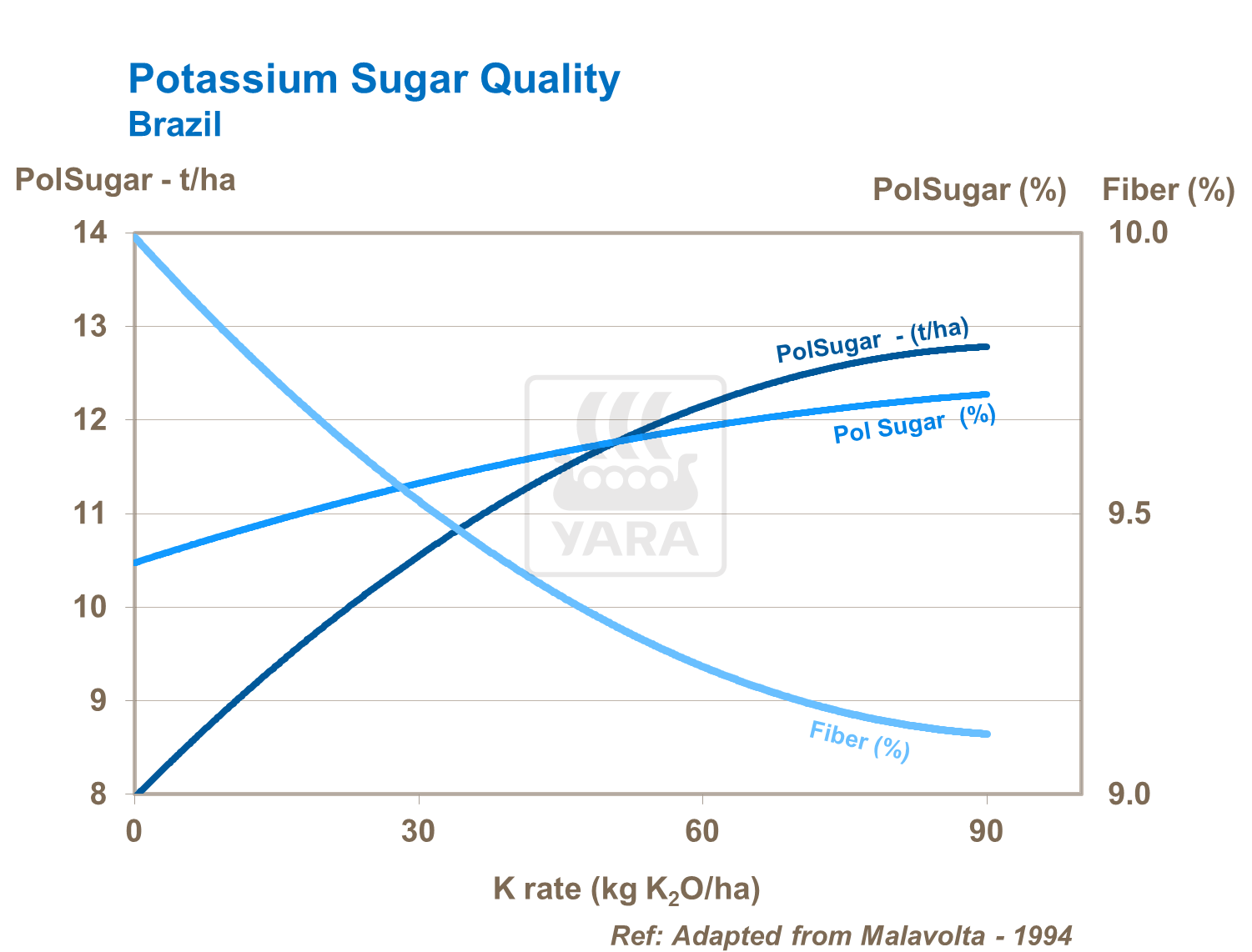 An adequate potassium supply ensures a higher sugar yield, by reducing the sugarcane fibre content.