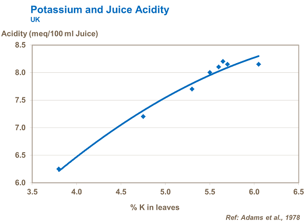 Higher levels of potassium in the plant, increases the acidity of the fruit and the resultant tomato juice.