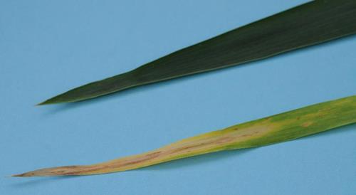 Starting on the older leaves, N deficiency causes chlorotic yellowing and stunted growth of cereal plants. Tillering and ear size are reduced. Severe lack of N leads to early senescence.