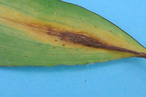 On the older leaves, V-shaped yellowing on the leaf tips progresses towards the base, so that leaves finally turn uniformly pale green/yellow.
