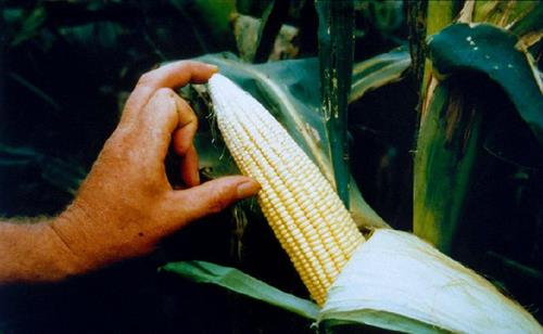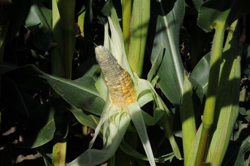 The cobs of K-deficiency plants are small and peaked. Grains in the cob tips are only poorly filled.