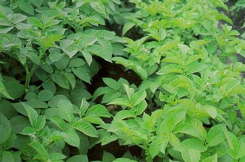 Sulphur deficiency, root parasites (eg PCN), deep drilling of tubers, nightfrosts, water shortage or heavy metal toxicity can cause similar symptoms.