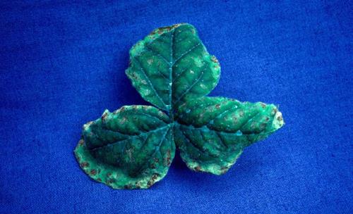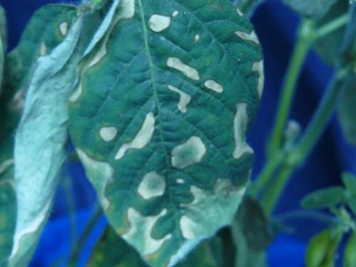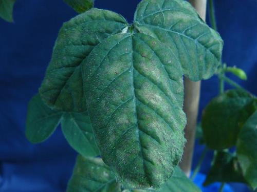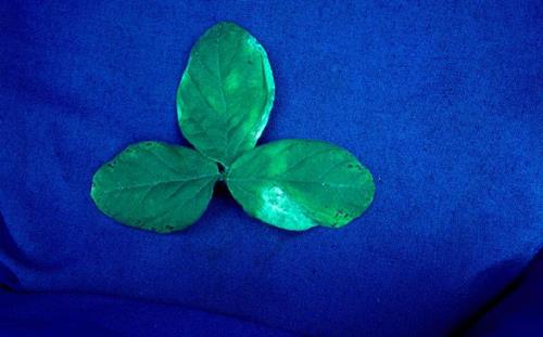 Ca deficient plants show reduced leaf expansion, primary leaves are often cup-shaped when emerged. Brown spots on young leaves and premature leaf senescence occur.